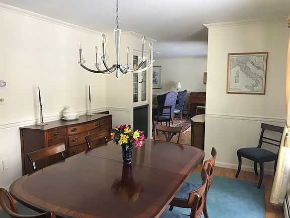 Beautiful 2 bedroom, 2.5 bath condo with central a/c, located in Spring Meadow, a 55+ community in beautiful Wyckoff, NJ. First floor has very sunny eat-in kitchen with natural gas stove, den with built-in bookshelves, living room with built-in bookshelves, natural gas fireplace and sliding glass doors that exit onto private patio with room enough for table, chairs and grill with pretty green space beyond. Large dining room with built-in china cabinet, powder room, wood floors and crown molding throughout first floor, 2nd floor carpeted with 2 bedrooms, 2 full baths, very generous walk-in closets with shelves galore, office space attached to master suite. There is a stair-chair installed if needed - can be removed if desired. Two-car attached garage.