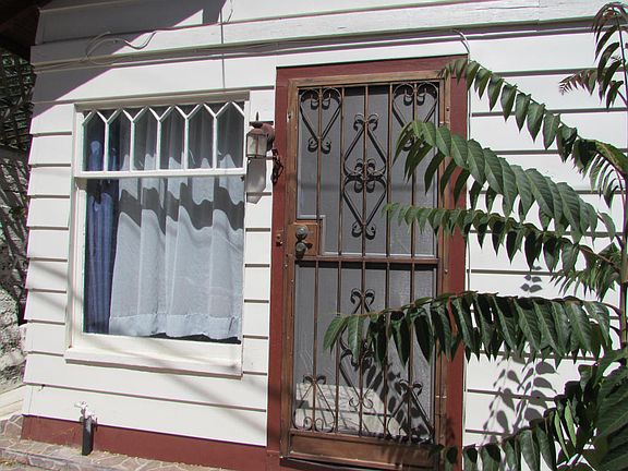 This move in ready bungalow home is adorable!! It says one bedroom but there is a beautiful room that would be a perfect 2nd bedroom,(Armoire has arrived) complete with your own bay window and a spectacular mountain view. It would make a fantastic art studio. How to describe this home...cozy,bright,airy,comfortable,peaceful. The original antique windows just add to the charm. Bedroom number one has storage galore and room for a sitting area. There is a bonus room off the back door and kitchen that could be anything you like...den,sitting room...whatever. The kitchen has custom made cabinets, nice tile back splash,stainless sink, pull up table for extra work space,a rolling cabinet, spice rack, display shelf,gas range. You will also see a ''door in the floor''open it and voila,(Click More you are on your way to the 430 sq.ft (MOL) basement. Here is where you will find your washer & dryer and lots of extra storage and a work area. There are large windows that bring in the light and a door that leads outside.There is a light switch in the kitchen where you latch the door open for the basement. We can't forget the bathroom, another room with a view and very spacious. There is additional storage on the side of the home where all the rose bushes are, you get there from the front porch along the wall. There is a deck in the back and an uncovered porch in the front, all wonderful places to unwind. You are only steps to Tombstone Canyon and close to dining and shopping. Bisbee Stair Climb goes right by this home. Come and see for yourself, its a charmer! ($200.00/year parking fee to neighbor.Parcel #103-61-059 Included in sale, taxes shown are for both parcels)