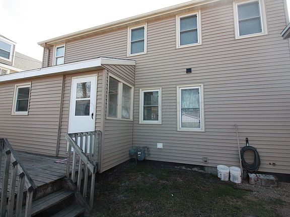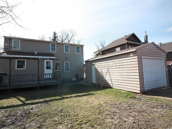 LOCATION! LOCATION! This charming steel-sided 3 bed, 2 bath home is a short walk to park and downtown. Newly updated spacious bath with double sinks, feels like a spa, & located next to a master bedroom with 2 large his & her closets. Upstairs bath is updated & adjacent to two large bedrooms, with lovely hardwood floors and newer windows throughout the home. Bright white kitchen boasts an open view to the dining and living area with extra sitting! Owner had professional contractor reinforce the now dry basement & installed 2 sump pumps! Brand new shingles on home and garage as well as new exterior garage paint. Enter garage through either end! Home has gas forced air, so just need to add central air unit. Storage shed included. Enjoy the warm summer nights on the spacious back deck!