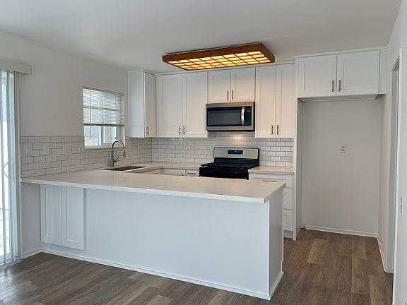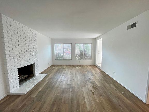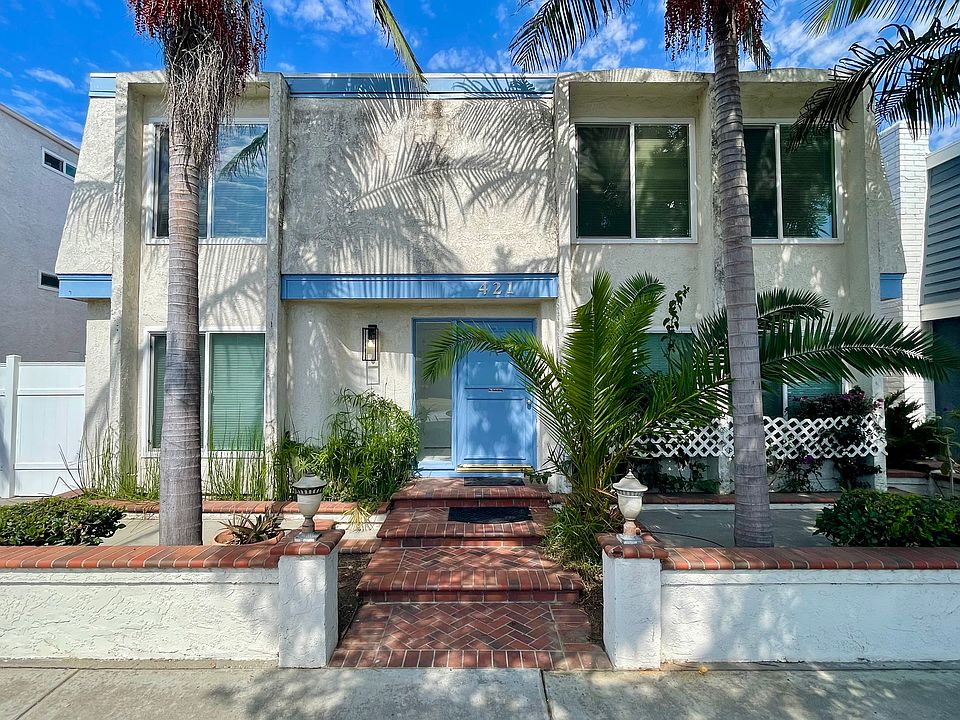 Fresh, bright beach living! 3 bedrooms (all upstairs) and 2 baths, just refreshed. Brand new kitchen with all new appliances and a gorgeous oversized stainless sink. Hard flooring throughout the property, newer windows and slider, and all new window coverings. The main bedroom boasts two closets, a private bath, and a fireplace! There's also a fireplace in the large living room. This home has incredible storage space, from the brand-new cabinets in the kitchen to the huge under-stair closet, to the incredible, over-sized two car garage! The front unit in a quiet four-plex, the home is blocks to the beach and an easy bike ride to downtown. In addition to the private front entrance and double porch area, there's a newly fenced private patio off the kitchen with hook-ups for a washer and dryer, if desired. This property is owned by a family who's dedicated to taking great care of it and is looking for someone who wants to make this beautiful place their home. No smoking, but yes to pets! Gardener included. A $500 pet deposit is required for approved small pets; fees are waived for service animals. No subleasing. Owner pays for water, trash & landscaping. Tenant pay all other utilities.