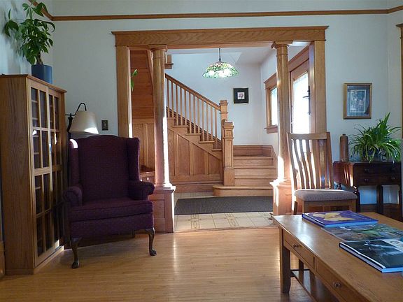 Has your dream always been to own a century old home? This gem is perfect in so many ways...the beautiful oak wood work is original and stunning as are the leaded glass windows, front porch, fenced yard with established perennials, garage built in 2013, shingles replaced in 2013 and the exterior was painted in 2012. Some added features include a finished attic with new carpet installed in May 2017, 4 second floor bedrooms plus a main floor bedroom currently used as a den/music room, main floor laundry and a wall of pantry cupboards for additional kitchen storage. The porch is relaxing and the front foyer will welcome you in. Take note of the pocket doors between the living and dining room too. Square feet above ground approximate. A classic home like this doesn't come around very often so please take a look and consider the possibilities!