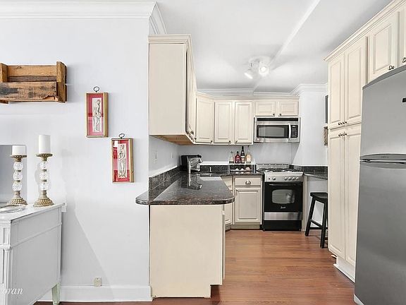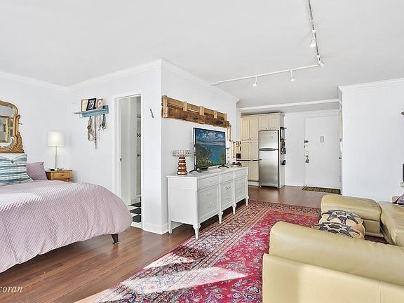Move right in to this serene alcove studio/ convertible one bathroom perched on the 10th floor of a full service building in Gramercy Park/Murray Hill. Easily convertible to a true one bedroom, this fabulous home is large enough for separate living/dining, sleeping, and entertaining. The large windowed L shape alcove sleeping area comfortably fits a queen size bed. Seamlessly close-off the alcove with modern glass sliding doors or beautiful rustic barn doors to create a full separate bedroom. The renovated bathroom features a fabulous vintage black and white tiles, floor to ceiling linen and storage closet, mirrored medicine cabinet, and walk in shower. The open kitchen features a huge pantry, updated cabinetry for storage, dishwasher, built in breakfast bar, and lots of counter space. Entertain guests in your 20 ft long living room, or hide away from the hustle and bustle of New York City and feel utterly relaxed when you enter this cozy apartment. Large East facing wall of windows flood the home with natural sunlight, beautiful color tones, and original hardwood floors all add a touch of zen to this charming home. Additional walk in coat closet offers great storage. Also available in combination with adjacent apartment 10D for a combination apartment (~1,200 ft2) Tracey Towers is a beautiful 24 hour doorman building with an elegant lobby featuring brand new elevators. Other attractive amenities include; bike and storage rooms, laundry room and boasts one of the prettiest resident rooftops in the city. There is also a wonderful live-in resident manager, and lovely team of doormen and porters. Pied-a-terres, guarantors and co-purchasing allowed with board approval. Pets are permitted with board approval. Subletting is permitted after two years of occupancy. Conveniently located to local shops and delicious restaurants, as well as Madison Square Park, the gorgeous East Side River path, Trader Joe's, Fairway, AMC movie theater, and public transportation.