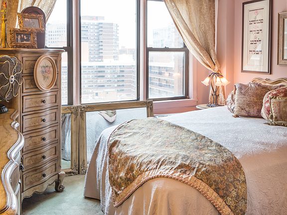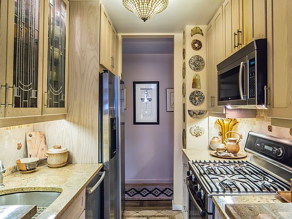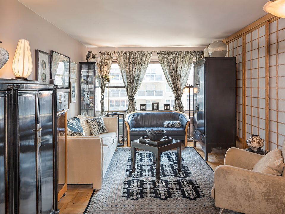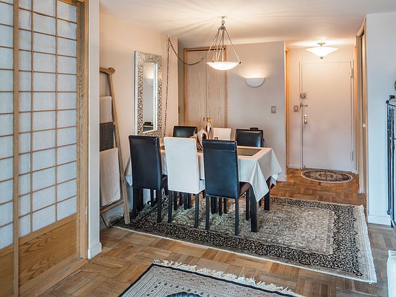 Estate-condition Sale. Bring your architect and make this apt yours. This unit has a great layout and is full of potential. Motivated Seller. Apt. 14G is approximately 800sqft, junior 4 corner unit. It features wall to wall oversized windows in living room and bedroom. This beautiful high floor unit benefits from Eastern and Southern exposures, which flood the space with Sunlight throughout the day. Main bedroom is located in the corner of the building, away from adjacent neighbors and hallways, which makes it a very quiet and peaceful place to rest. Part of the main bedroom has been converted into a walk-in-closet; this space can easily be converted back to original layout by removing the pressurized walls. The walk-in closet has a South facing window, which permits light and ventilation into the closet. This space can also be used as a nursery or a reading room. The convertible second bedroom ( approx. 11X12 ) is currently sectioned off with sliding wall of floor-to-ceiling oak shoji screens. This space may be opened up to be used as a dining room, or kept closed off as a second bedroom, work space, guest room, or a den. The kitchen was renovated few years ago with high end finishes and stainless steel appliances. The kitchen features solid wood cabinets with stemmed glass doors, inside and under-cabinet lighting, granite countertops, and elegantly designed tumbled limestone tile on the floor and backsplash. The kitchen has been very ergonomically renovated with a very deep Franke sink with 4 fitted cutting boards and drains, a side-by-side stainless steel GE Profile counter depth refrigerator (which gives the appearance that it is built-in). There is a Bosch range with 30 inch convection oven and warming drawer. In addition to a 30 inch Bosch microwave /exhaust fan above. The dishwasher is an 18 inch Miele Dishwasher with silverware tray on top which leaves a substantial amount of room for glasses and dishes; It also has hidden controls and is extremely quiet. The original closet doors were all replaced, and all have oak molding and are almost 8 feet tall. There is a very generous amount of closet space for hanging cloths with a great number of shelves on top, with easy access. There is a large walk-in pantry closet right across from the kitchen.