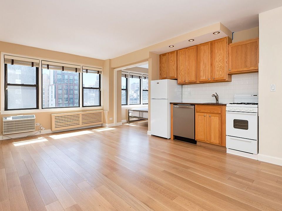 Endless possibilities await with this large, sun drenched alcove studio in Tracy Towers! Gleaming hardwoods, showcased by a south facing wall of windows, provide an abundance of light throughout. Charming kitchen boasts gas range, oak cabinetry and new dishwasher. The spacious alcove can accommodate a queen bed adjacent to the recently renovated bathroom. There is ample closet space and an in-wall a/c unit. An expansive rooftop terrace offers spectacular 360 views, large entertainment spaces and lovely garden spaces. Enjoy the vibrancy of Kips Bay, the Flatiron District, Gramercy Park and the numerous local shops, restaurants and comedy venues that make up this dynamic community. Other amenities: The building is pet friendly, with a 24 hour doorman, live-in super, a laundry room in building and bike storage. Centrally located in Kips Bay and close to 4,5,6,N,Q,R and L subway lines and multiple bus lines. Pets are allowed pending approval.