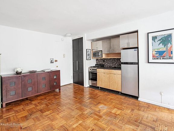 SPRING SPECIAL-! Sun-flooded large Jr.one bedroom with south exposures available in Tracy Towers. The spacious living room is a perfect place to entertain with generous seating and dining area. This apartment has been tastefully renovated to include the tiled bathroom and the kitchen with stainless appliances. Abundant sleeping alcove is large enough to accommodate a queen size bed and it can be easily converted to a separate bedroom. Three large customized closets provide abundant storage space and gorgeous sunlight through the wall to wall windows will add allure to this charming apartment. Low maintenance makes this apartment super affordable. Tracy Towers is exceptionally well maintained, featuring a full-time doorman, central laundry, bike room, and storage. Spectacular rooftop garden oasis with 360 degree views of the Manhattan skyline is perfect for morning coffees and afternoon happy hours. Pied-a-terres, co-purchasing, and pets are welcome!It is situated near public transportation (4, 5, 6, N, Q, R and L subway lines and multiple bus lines) and it's short distance to Union Square where is the exciting centre full of shopping, dining, and entertainment experiences.