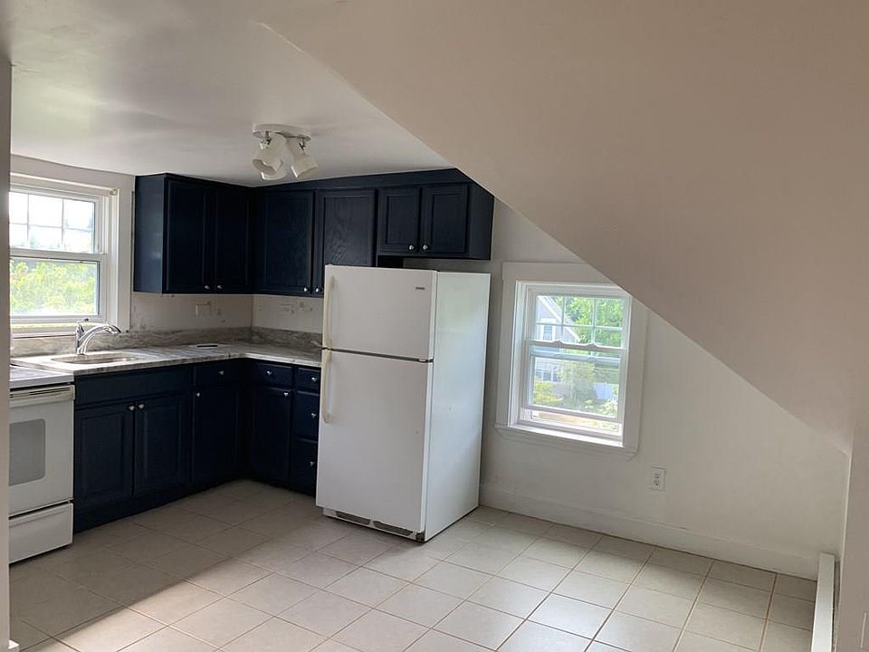 Completely renovated 2 bed 1 bath in Rockland. Unit features updated eat in kitchen with refrigerator, stove, and granite countertops. Two bedrooms and living room with refinished hardwood floors, and one full bath that has been updated. The entire unit has been freshly painted. Coin op Washer and dryer in the basement. Private parking available for 2 cars, Private deck, and shared back yard space.Close to Abington T Station.