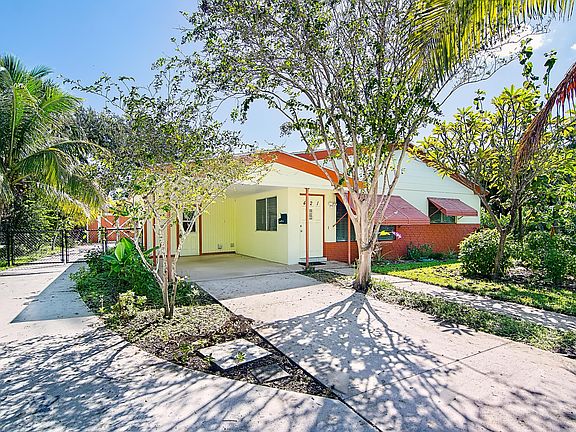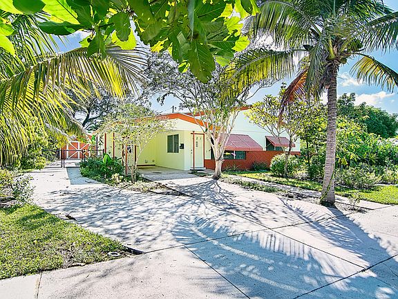 This rare opportunity doesn't come around often. Adorable 2 Bed, 1.5 bath Concrete Block home has a huge backyard with over 40 FRUIT trees/plants. Not to mention this home comes with a DETACHED Garage that has a full Kitchen with Electric, Plumbing and is fully insulated. This can be converted into a room and be rented out or can be used as a garage, fitness room, shed or anything you may desire. Walking distance to the local park and minutes from restaurants, grocery stores, shops, bars and highways. Walking distance to lots of entertainment locations including The Brewhouse Gallery, an art, music venue, and craft beer establishment and the Kelsey Theater. The City of Lake Park offers many parks throughout, recreation, picnic and playground areas along the Intracoastal. Roof is 2006, AC is 2012, Full Lawn Sprinkler, Public Water, Public Sewer, gorgeous terrazzo floors, electric fireplace, vaulted ceilings and also an updated Electric Panel! A perfect spot for you or your family but also a home run if you are an investor! Do not miss this opportunity as it will be gone quickly.