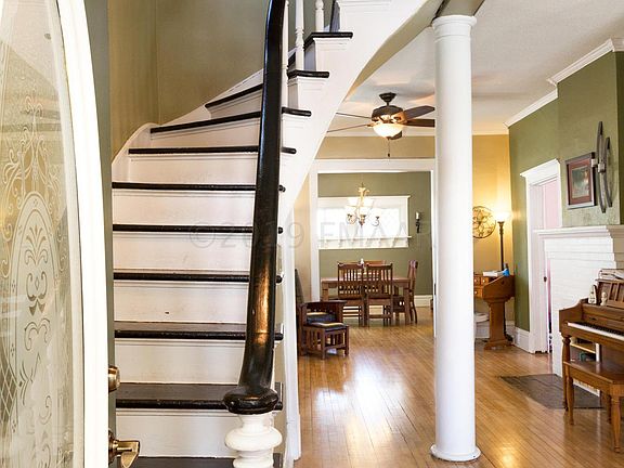 OWN A PIECE OF HISTORY! Character and charm unfold as you tour this amazing 1880's home with wrap around front porch and hardwood floors throughout. The lattice detail, bay windows, high ceilings, and two staircases are evidence of classic Victorian details. The main floor bathroom is freshly remodeled with brand new tile shower, tile flooring, and attached to the main floor bedroom. The upper level offers 5 bedrooms which sets this home apart from the rest! Enjoy the tall basement ceilings which is rare for a home this age. It has drain tile, a newer furnace, updated sewer stack and PVC line to the street. It's a must see!