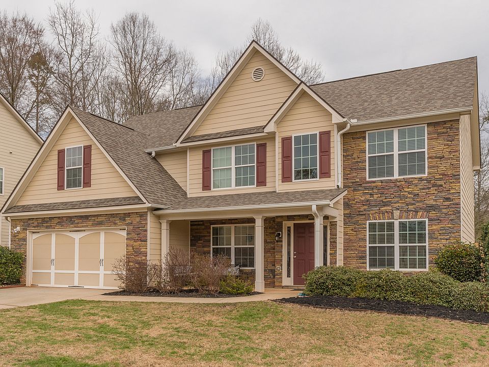 Gorgeous traditional home with foyer entry open to a spacious formal dining, office/den, Great room with cozy stone fireplace, tile cook's Kitchen with breakfast room & guest bedroom & full bath. 2nd Floor offers a ton of space, large bedrooms with walkin closets, owners suite is huge and includes a sitting room & enormous spa bath built for 2 with double walk-in closets. This home also offers a tandem garage with space for workshop or storage. Patio overlooks nice wooded backyard with custom built workshop. Gum Springs School District! Great location! Tons of storage!