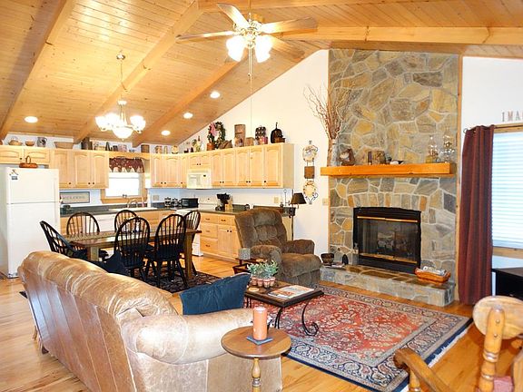 Cabin in High Chaparral right off the Blue Ridge Parkway in Fancy Gap. Home Features: 1928 sq. ft. 3 Bedrooms and 2 Baths, Open floor plan on the main floor with a gas log fireplace, hardwood flooring, 2 bedroom and bath. On the lower level you have a family room, den/office area, bedroom, bath and a laundry/utility room. Superior wall basement. Covered front and back porch, Wood, carpet and tile flooring, Central Air Conditioning with Gas Furnace. Cabin is on a corner lot with a paved drive and walk out basement. Home comes mostly furnished.