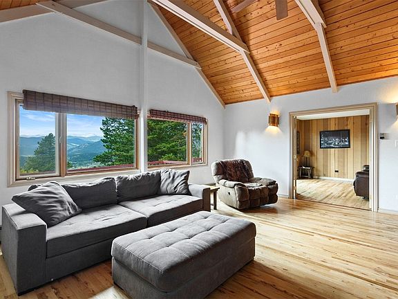 Lose yourself among the aspen and conifers while you take in the expansive, breathtaking views from nearly 3 acres of your own private mountain retreat. Soaring above the valley floor, you will find this rustic cabin waiting to welcome you with the warmth of wood beams, tongue and groove ceilings and 2 fireplaces to make sure you are comfortable and cozy. Large windows bring in lots of natural light and frame the mountains for miles. The long driveway cuts through a tunnel of aspen before opening up to reveal your cabin and an oversized 2 car garage with workshop area. Just minutes away, immerse yourself in the historic downtown area, where shops, restaurants, casinos, trails and more beckon you for entertainment and recreation. Live on top of the world!