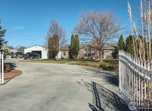 Ranch style home on 1.5 acres in quiet & spacious Wildcat Acres neighborhood. Large master suite on one end of house w/ laundry. 2 bedrooms & full bath on the other end. Master has larger doors for improved accessibility. New carpet, interior paint, microwave & dishwasher. Covered patio overlooking spacious yard with sprinkler system. Oversized 4-car detached garage/shop. Yard fully enclosed w/ white vinyl fencing & security gate. Close to town of Milliken. Must see this gem to appreciate!