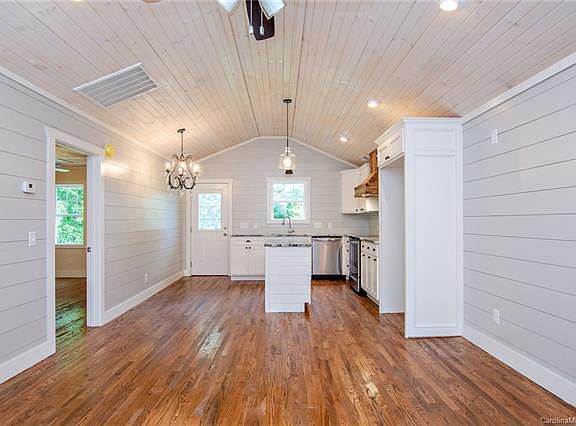 WOW! Completely gutted and renovated home. Practically brand new in 2019. All new plumbing, electrical, sheetrock, lights, real oak hardwood floors, solid custom wood kitchen cabinets with soft close drawers, marble countertops, 30 years architectural shingle roof, solid wood board & batten exterior with cedar shake shingles front accent. All new bathrooms (tile, toilets, vanities, tub, faucets, lights), new insulation, fresh paint, new and functional layout. New Windows and doors. New landscaping. New custom solid wood shutters. All new stainless steel appliances. What a stunning home! Vaulted beadboard ceilings and solid wood shiplap walls. Amazing! Storage building outside, big yard. Covered front porch and a back deck. 12 foot ceilings in master bedroom. LR and Kitchen with 10 foot cathedral/vaulted ceilings. Gorgeous kitchen! You will love the beauty and charm of this home both inside and out!
