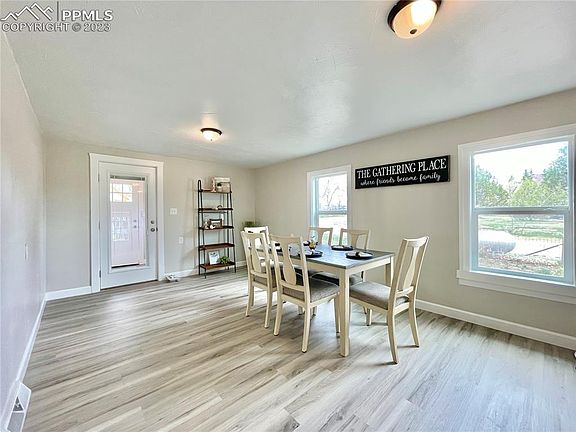 Adorable refinished turn-key home on DOUBLE LOT (sub-divide yourself) w/detached shop & large yard! Newly-finished fully permitted whole-house remodel; one of a kind in Calhan; quiet & quaint. Gorgeous new cabinetry and butcher block counter tops; move-in ready w/all appliances including brand new washer & dryer! New paint inside/out. 3 main level bedrooms including master w/barn doors and beautifully tiled custom-shower. 1 bedroom downstairs w/new egress window. LVP flooring & thick cozy carpet throughout. Huge yard has endless possibilities and kids play set stays if you want it. Lot/structure configuration is ideal for potential sub-division (shouldn't interfere w/existing house) if desired.