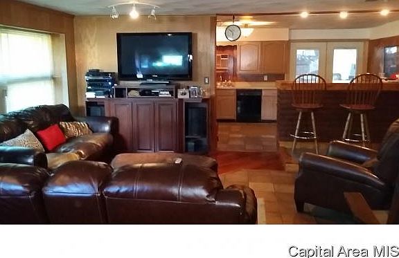 Spacious living area in this home which is zoned S2 so you may run your business here too. Was 3 bedrooms but one wall was removed for previous business. Wall can be re-built and still have a large office with outside door. Unique 23 x 20 living room opens to breakfast area of home and french doors to the huge family/ sunroom where there is a beautiful brick faced fireplace & room for dining table. 11 x 20 kitchen holds the large breakfast table. Sits on 80 x 160 lot and backs up to a natural wooded setting.