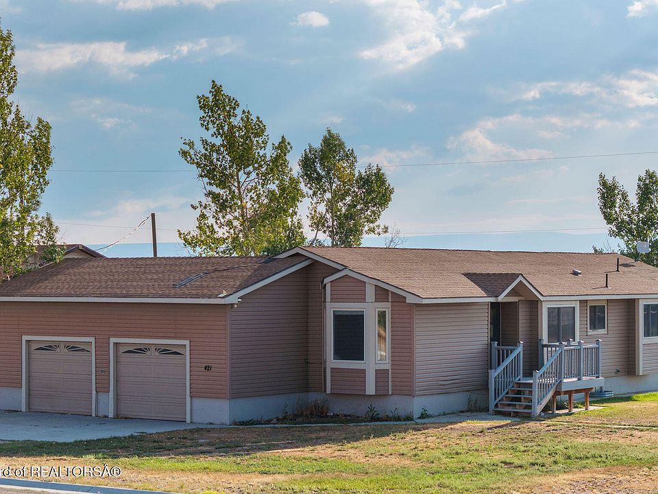 Embrace small-town living in Marbleton with this generous 5-bed, 3-bath residence, featuring two versatile storage rooms on a prime corner lot! Offering just over 2,600 SF of versatile living space, it's designed for connection, comfort, and the freedom to make it your own. The open-concept living and dining areas flow effortlessly to a private back deck, ideal for enjoying crisp mornings or summer evenings under expansive Wyoming skies. The primary suite is a private retreat with double vanities, a large soaking tub, and a generous walk-in closet. With a 2-car attached garage, abundant storage, you have the opportunity to bring your personal style to life. **Seller Offering up to $10,000 Allowance! Ask for more details!**