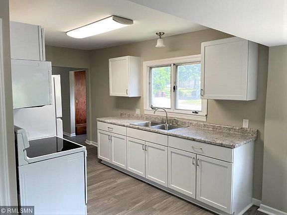 Cheaper than rent! Nicely updated 2 bedroom, 1 bath rambler. All new kitchen cabinets & countertops, LVP flooring, carpet, appliances including washer & dryer and 92% high efficiency furnace. Fresh paint, remodeled bathroom. steel siding, 2 car detached garage & mature lot. Perfect for a first time home buyer or investor for rental. Quick close possible. Affordable!
