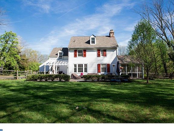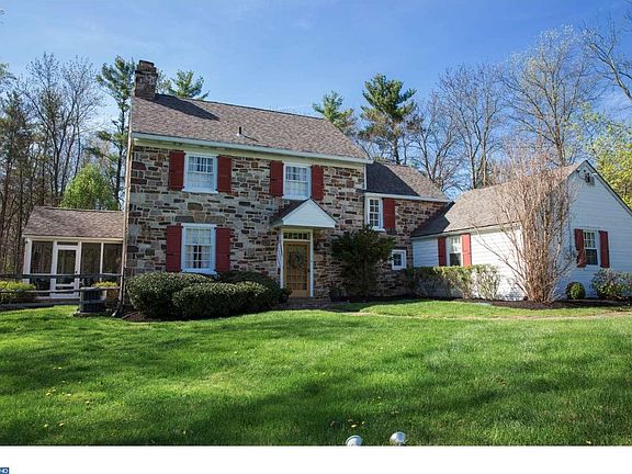 This stone farmhouse is chock full of charm, woodwork detail, arched trim work and retains it's original plasterwork, hardware, doors and floors. Set back on nearly 1.5 acres, the rear wooded fenced in yard will have you yearning to sit out back on the slate patio under the arbor. Tasteful and lush landscaping surround this loved home. The owners of this home maintained and improved upon the homes character and original features. Fresh paint and hardwood floors throughout (great condition), NEW roof, NEW HVAC, all appliances included, waterproofed basement, freshly painted arbor and so much more! Throughout the home you will catch the gleaming sunshine on the hardwood floors and brass fixtures. Inside you will enter the foyer and catch a glimpse of the living room, dining room, kitchen and wooden staircase leading to the second floor. The living room will keep guests comfortable as they enjoy the wood burning fireplace. Off of the living room is the screened in porch with private entrance/exit door. The porch is like a photo out of Restoration Hardware, look down at the slate floor and look up at the original wooden beams. You will be temped to sit down and read a book in the quiet setting with views of the side and rear yards. The dining room will allow you to serve a holiday feast while guests relax on the rear slate patio. The kitchen offers plentiful counter space and adorable d~cor/features. The family room's shag rug feels so good on the toes and is ideal as a playroom or grand gathering room. The hardwood floors follow you to the second and third floors. There are three bedrooms on the second floor and a full hall bathroom. The master bedroom has a private full bathroom. Abundance of closets and deep windowsills on all floors of this home. The fourth bedroom is on the third floor and has a private bath. Walking distance to schools, shops, banks and conveniently located to turnpike, routes 476 and 95. Charming, charming, charming home! You will be so impressed as you turn every corner in this home. This home invites you to buy me!