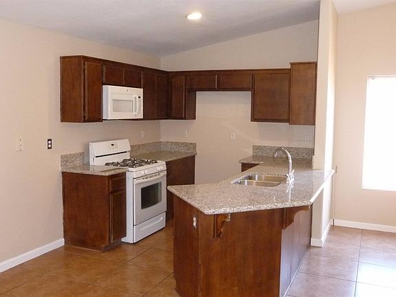 Beautiful home in a Nice neighborhood corner lot. Home featuring 4 bedrooms, 2 baths with newer paint, tile flooring throughout the house carpet in two bedrooms, granite counter tops in the kitchen with a stainless steel sink, newer microwave 2 car garage. Covered patio with low maintenance backyard.