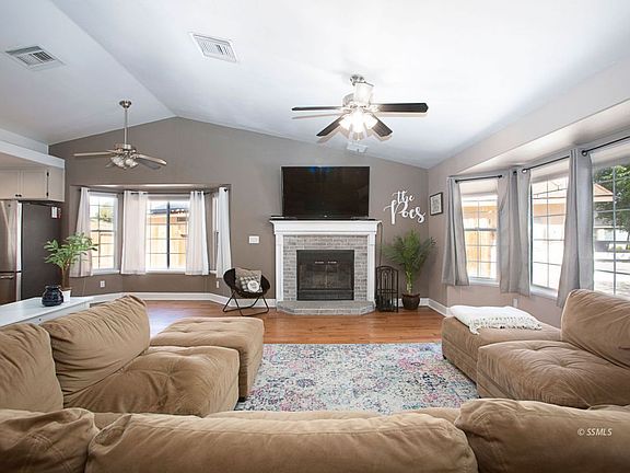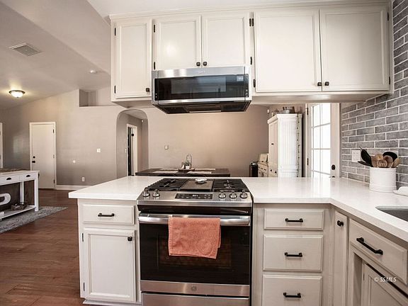 Welcome home to this 4 bedroom cut-de-sac cutie! All remodeled with new floors, paint and fixtures. Great open floor plan with living dining and kitchen all together. Walk into Vaulted ceilings , natural light and brick fireplace. Remodeled kitchen with Quartz countertops and stainless appliances. Master bedroom features vaulted ceilings, walk in closet and updated master bathroom. Big corner of cul-de-sac lot with covered patio, planters and gazebo. Adorable!!