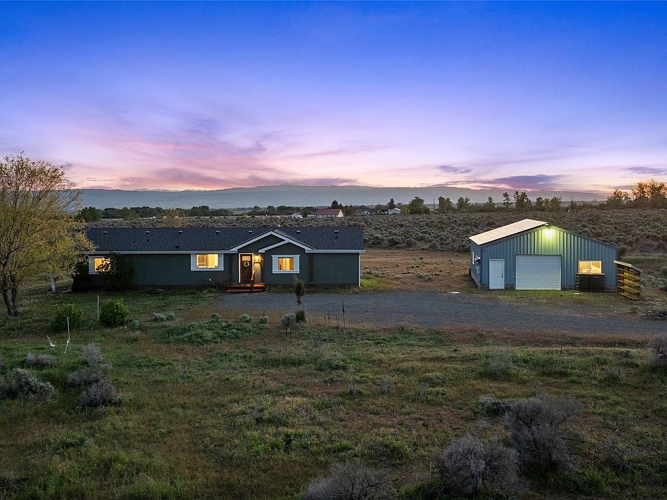 Welcome to this amazing home on 10.60 acres in the Ellensburg country! Ideal floor plan with the primary bedroom and ensuite bathroom on the opposite side of the home from the guest bedrooms. Primary bedroom has a double closet- ensuite bath features ample storage, jack and jill sinks and a vast shower. Next to the primary you will find an additional office room. Enjoy the roomy living area and get cozy by the wood stove in the winter. Take in the expansive views from the windows where you can see Mt. Rainer peaking through the hills. Spacious kitchen with amble cabinet and counter space. Separate utility room with built in extendable drying rack. 30x30 detached shop with 27 solar panels, heater, and air filtration system! Brand new roof.