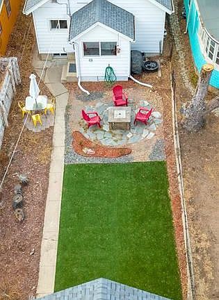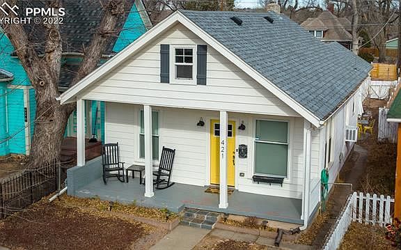 HISTORIC CHARM AT A GREAT LOCATION! Beautifully renovated bungalow near OCC & close prox to I25, offers the warmth and charm of 1908, with many modern updates in recent years to enjoy today's standard of living. The 9' ceilings and open concept of an entertainment room, dining and kitchen is great for entertaining and daily functionality. Walk out the back enclosed patio (bonus sq.ft. not counted in assessor records) to your own fenced-in outdoor space with fire pit and seating area, maintenance-free green turf, and access to your garage. The detached 2-car garage leads to the alley. This home was remodeled in recent years down to the studs. At the time, new maple floors, kitchen cabinets, granite tops, bathroom has new tile, tub/shower, vanity, lights, new insulation in the exterior walls, new electrical system 2016, newer water heater, new roof 2014, siding, etc... added around 2016 or 2017. There is a functioning downstairs bathroom and the 3rd bedroom is located in the basement and features new carpet, walls, and finishes. Laundry area is located in the basement as well. The upper attic is very spacious and measures an impressive 35' x 11'. It has recently been drywalled and has sub-flooring. Endless possibilities await.