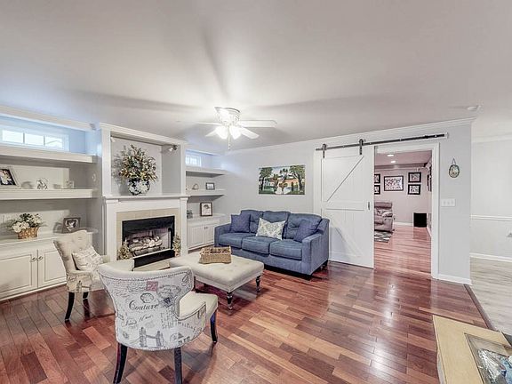 Fantastic 4 bedroom 2.5 bathroom home perfect for entertaining! Rocking chair front porch! Beautifully updated kitchen w/granite countertops,glass tile backsplash,recessed lights,porcelain tile floor,newer dishwasher,built in microwave,gas stove & refrigerator may stay! Breakfast bar & breakfast room opens to living room w/ceiling fan,crown molding, built ins & gas fireplace! Custom barn door leads to huge family room w/ceiling fan & recessed lights,great space for home theater! Dining room! Office! Half bathroom w/porcelain tile floor,granite counter vanity,new mirror & lighting! Large owners suite w/double tray ceiling,ceiling fan plus custom barn door to amazing private bathroom w/tile floor,jetted bathtub,shower, dual sink vanity w/granite counter & upgraded mirrors & lighting plus 2 walk in closets! 3 guest bedrooms each w/ceiling fan,1 w/built ins! Laundry rm! Oversized 2 car garage w/closet! Extra parking pad! Covered deck! Hot tub stays! Outbuilding w/electric! Fenced backyard!