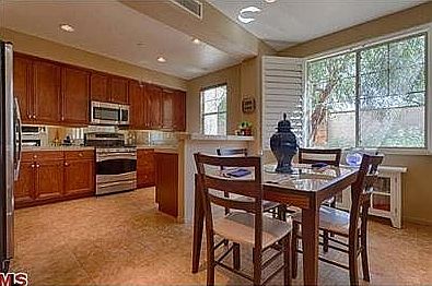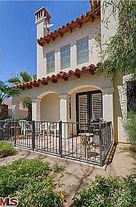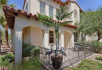 Looking to stay? Looking to play? This luxurious townhome in downtown Palm Springs' gate-guarded VillageTraditions neighborhood is the ideal choice for those seeking either a year-round residence or a vacation getaway. Impressively sized at approx. 1,835 s.f., the bright and open 3-bedroom, 3-bath floorplan makes a grand first impression with an entry and living room crowned by a double-height ceiling and clerestory windows. French doors open the space to a large patio with dramatic mountain views, and a contemporary fireplace is flanked by illuminated niches for plants, art or future built-ins. The living room flows seamlessly into the dining room and kitchen, where granite countertops, a mirrored backsplash, handsome wood cabinetry, a walk-in pantry, breakfast bar and stainless steel GE Profile appliances are featured. Enjoy a 2-car garage, master suite with view deck, ensuite guest bedroom, art lighting, new patterned carpet, and a resort-caliber community pool and spa.