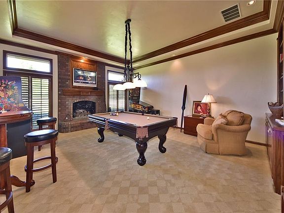 Don't worry about your slippers as you crawl out of bed in the morning onto the lush carpet. Set the timer the night before so the bathroom floor is toasty as your toes take the first step into the rm. Enjoy your first beverage of the morning on your private patio watching the morning news. After working all day, you can reach into one of the 2 wine coolers to again relax on the patio enjoying the sunset. With the home equipped with surround sound you can watch your favorite show on 1 TV & have music playing in another room. Should a pool/waterfall landscape be your desire, this backyd is waiting for your oasis. The 10 E fairway is your backyd setting. Though the formal lvg rm is currently used as a game rm, it certainly would make a fantastic office w a gas log fireplace. Either fireplaces can be converted back to woodburning if desired. Granite counters in the kitchen & bathrms along w the travetine tile are but a partial list of updates!