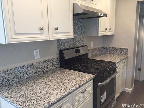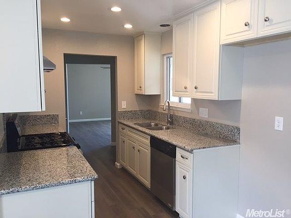 Great curb appeal! Updated 4 bedroom/ 2 bathroom on quiet tree lined street. All new kitchen with gorgeous granite, stainless appliances, new cabinets, and new wood laminate flooring. Separate living and family rooms with unique and cozy fireplace. Clean new bathroom with new vanity, new tile, and new glass shower. New plush carpeting in bedrooms. All new dual pane windows. New paint inside and out. New 30 year composition roof. Adorable matching shed in the low maintenance back yard.