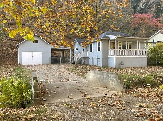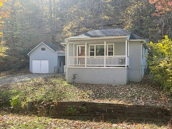 Just move in and start enjoying this cozy 2 bedroom 1 bath home situated on 2.1 acres of wooded land. It's a peaceful, quiet setting, located just minutes from shopping and restaurants. The home features a beautiful updated kitchen with sparkling white appliances, updated bathroom, 2 bedrooms and a living room/dining area with a natural gas log freestanding fireplace. A door in the living room opens onto an elevated private front porch where you can sit and enjoy the outdoors and your morning coffee. New windows provide an abundance of natural light. For added convenience the home has a walk out basement with lots of storage space and washer and dryer which both stay with the house. The detached garage features a unique room over the garage which can be accessed from a separate entrance in the rear of the building. This is a home you really need to see!