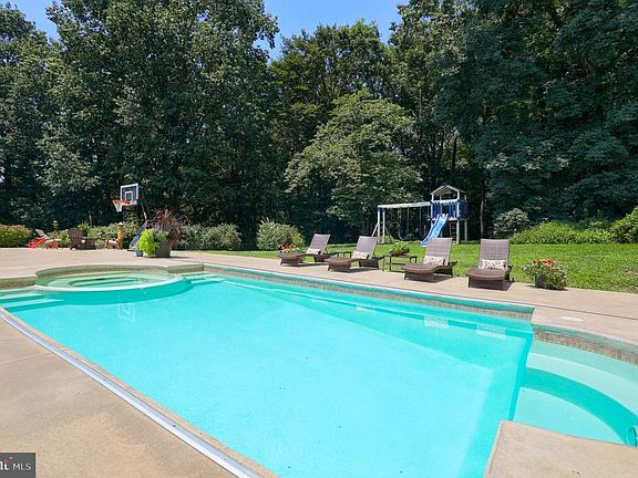 Spectacular views from this fabulous property in Warwick school district! The first floor welcomes you with panoramic windows, oversized rooms, hardwood flooring and a fabulous, open floor plan! This plan features a formal dining room, plus a large dining area adjoining the kitchen! Kitchen includes a Sub-Zero refrigerator (built-in), a pot filler and a fantastic island / breakfast bar! Double Jenn-Aire ovens (1 is convection), farmhouse sink w/ 'touch' faucet and garbage disposal too! First floor office/study features built-in furniture w/ granite tops! You'll enjoy the spacious mudroom w/ built-ins & lockers, too! The second floor features four bedrooms, plus a bonus room (no closets), easily used as bedroom 5. The master suite features a walk-in closet, dressing area, gas fireplace and adjoins the covered balcony overlooking the pool. Basement level features a gas stove/fireplace, family room, full bathroom (great for access for pool guests!), and storage room. This elegant home is heated and cooled by a geothermal HVAC system. The outdoor area welcomes you into the lovely 16'x32' in-ground pool (4'-5'6")w/ hot tub. Retractable cover for safety, too! You'll love the 14'x36' shed (with floor mats), overhead door, electric, storage loft and lean-to. Any/all appliances included in the sale are being conveyed in as-is condition.