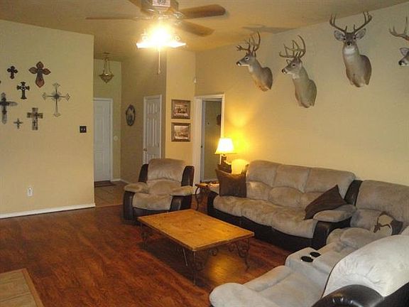 Take a look at this 4 Bedroom, 2 Bath, 2 Car Garage Brick home on large lot! Large living area with easy care wood look vinyl flooring, woodburning fireplace with gas starter, built-ins and 10' ceilings. Other features include nice kitchen with corner sink & windows, custom cabinets, pantry, split bedrooms, huge laundry, ceramic tile, jetted tub, separate shower, fenced backyard & extra parking. There is even room to build a shop!