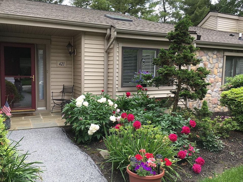 Hershey's Mill is a 55+ Community near Malvern in West Chester. Welcome to this beautiful expanded Thornbury Model nestled in the wonderful village of Eaton This 2 bedroom, 2 bath home has an additional All-Season Room and stairs to an attic with lots of floored storage space. Enter into the tiled foyer, to your right is the eat-in kitchen with a center island, granite counter tops, tile backsplash, and tile flooring. The breakfast area has a window seat looking out on a beautiful flower garden with birds, bees, and butterflies. Next is a large dining room with crown molding and chair rail all around, leading to the All-Season room which opens out to another garden area. Adjoining the dining room is a large living room with a wood burning fireplace. A center hallway leads to the master bedroom with a shower, 2 closets, and a linen closet. The hallway also accesses the second bedroom, a laundry room, a linen closet, and a second bath with a tub. The one car garage is a short and level walk from the front door. Additional parking is available and convenient. Eaton Village has new siding, lighting, and garage doors. The roofs and skylights are currently being replaced at no additional cost to residents. The village is also one of only two villages in Hershey's Mill with its own swimming pool, a wonderful place for gatherings either to swim or socialize with neighbors. Hershey's Mill has an 18 hole golf course and clubhouse you can join. Enjoy the community amenities including 24 hour security, tennis, gardening plots, and a woodworking shop. At settlement, buyer pays a one-time cap fee of 1708.00 to the Master Association and a one-time fee of 1480.00 to Eaton Village.