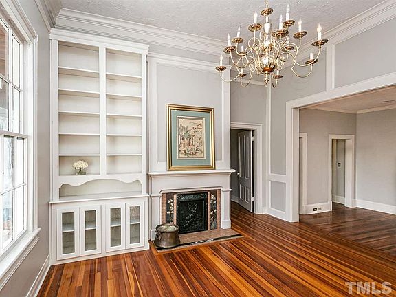 Price reduction!Beautiful home in heart of Oakwood. According to Matthew Brown an Oakwood historian, the house was built circa 1879 by Richard Stanhope Pullen who later built large brick houses on Elm Street. The home has lots of character; original heart pine floors, original windows,2 charming porches,3 fireplaces,2 full bathrooms have hardwood floors reclaimed from Murphy School Auditorium. Other unique double fireplaces, one in the living room designed by Marina Bosetti a local Boylan Heights artist.