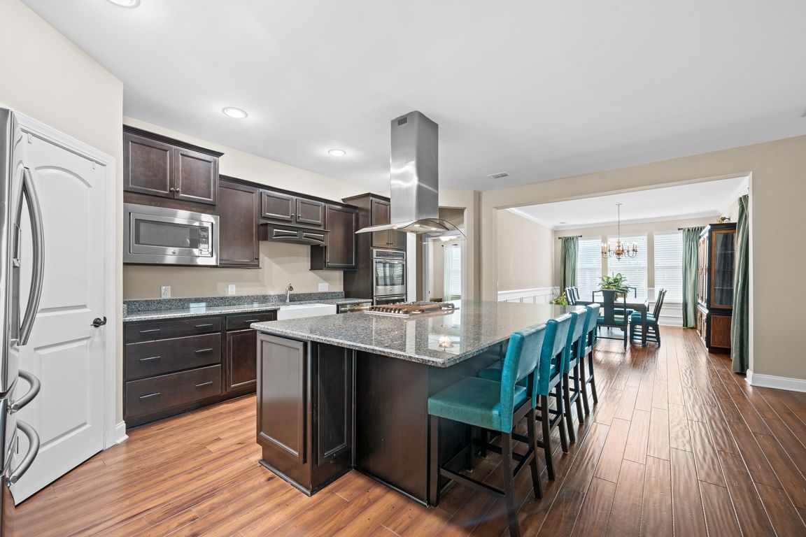 Farmhouse sinkProfessionally maintained landscapingCorner lotCook top islandDouble ovensCustom hood rangeOpen-concept layout