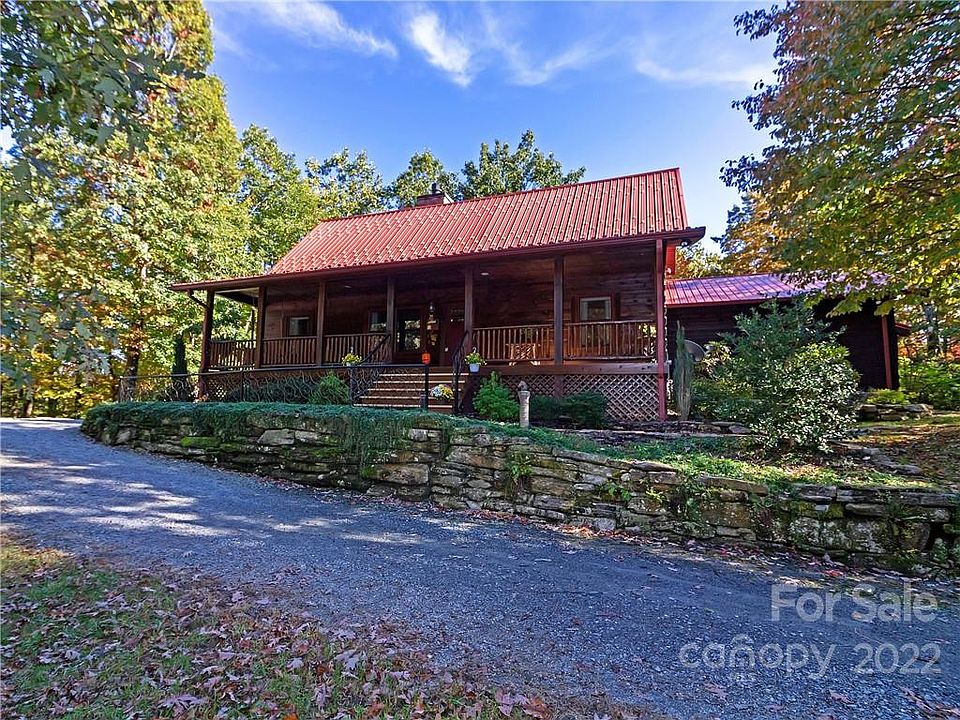 BACK ON THE MARKET! Immaculate log cabin built by Jerry Brown nestled on 10 wooded acres. Main home has a primary suite on the main floor, open floor plan, vaulted ceilings, hand carved cedar porch railings, custom iron work inside and out, and a trail system leading to an outdoor fire pit. Property has 2 separate outbuildings: a detached oversized 2 car garage with finished apartment and full bath, and a second building with 2 garage bays, large heated workshop, and half bath. The main home plus the 2 outbuildings total over 5000 sq ft under roof. Each building has its own septic system. New Thermidor appliances in the kitchen (April 2021), solar water heater, radon mitigation system installed, back deck and rails replaced 2022, all systems in the home have been recently serviced and perfectly maintained, main septic tank at house was serviced and pumped 11/21. Horses are allowed, 1 horse per 2.5 acres. No active HOA.