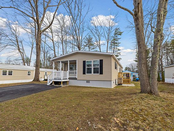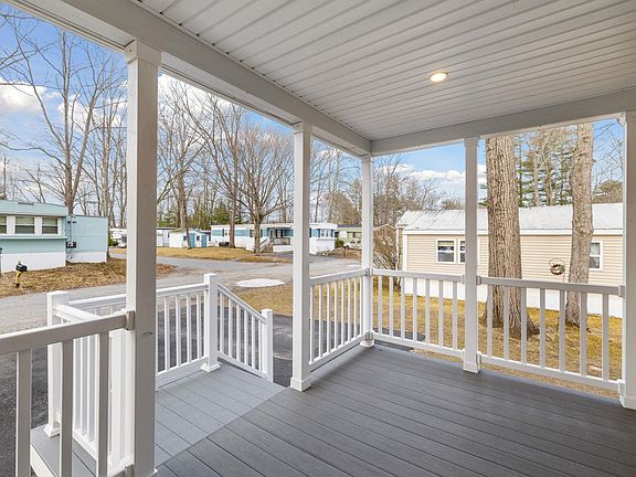 Welcome to River Run, a 55 plus community located in Exeter NH. This 2023 Skyline model has over 1300 SF of modern living space with all the extra's. Walk in from your front covered farmer's porch into your large modern kitchen which is light and bright. The stainless appliances along with an enormously deep sink are a chef's dream. The glass tile backsplash gives it a hint of color and warmth. The large living room has a trey ceiling and crown molding throughout. Plenty of room to relax in the recliner and watch the game or a movie. The primary suite has an incredible accent wall and large enough for a king size bed. The walk in closet will hold all of your clothes and the ensuite bath is the perfect space to start your day. 2 Additional bedrooms are perfect for guests or a home office. A separate laundry room keeps the clothes out of site but also has plenty of room to store the vacuum and other household items. This home is a great place to downsize but also have the space and to live and enjoy life. The clubhouse offers opportunities to meet with friends and play a game of cards or socialize. Store your gardening tools and bicycles in the 8x10 shed out back. After a long day of sun you can enjoy a glass of wine and some quiet time on the front covered porch. Don't miss the opportunity to purchase this nearly near home. It's close location to downtown Exeter and the seacoast make it the perfect place to live.