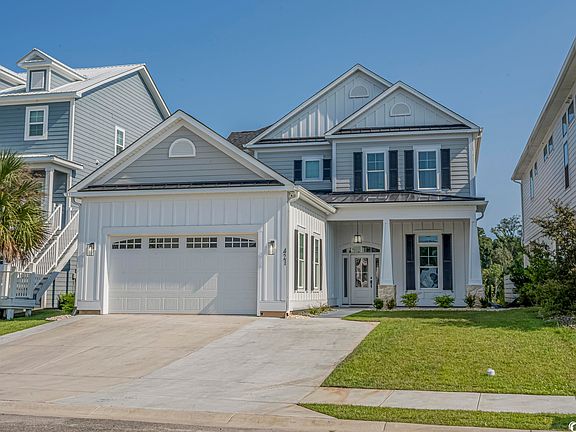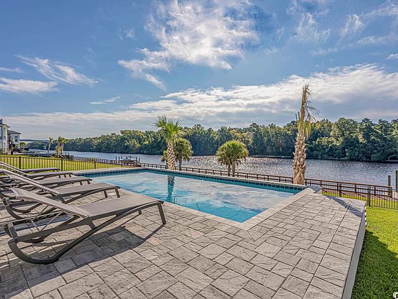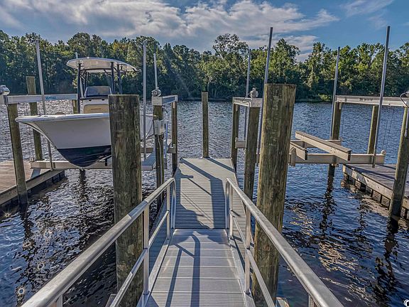Absolutely stunning 5 bedroom 4.5 bath custom built home that has it all! Built in 2021! This home is located directly on the Intracoastal Waterway in the prestigious & gated community of Boardwalk on the Waterway. This captivating home has stunning views of the waterway in both directions from your dual covered and tiled 12X40 decks and porches! Enjoy your open floor plan with waterway views from almost every room in the home. Between the outdoor cooking and entertaining area, salt water pool overlooking the waterway, boat dock with an electric lift you will live everyday like you are on vacation! The gorgeous kitchen is any chef's dream with luxury white and brushed bronze Cafe' Collection appliances, quartz countertops, custom cabinetry and large walk-in pantry. First floor ceilings are 14' with custom trimming including coffered ceiling with a modern fireplace in the main living area. The downstairs features a guest master suite with built in closets and a beautifully designed modern walk-in shower. Additional guest room/office is located in front of the unique custom wine rack. Walking upstairs you can't help but notice that all 3 bedrooms are on suites! Every bathroom is finished with tile and includes built in closets. The master includes a sliding glass door showcasing the view of the Intercoastal Waterway. The master also boasts double tray ceilings, 3 closets, double vanity sinks with a make-up corner, a rain shower, and a beautiful freestanding tub with custom light fixtures throughout. The Boardwalk on the Waterway community includes a boardwalk running the full length of the community on the Intracoastal Waterway, gazebo, private boat ramp, day dock, and gated outdoor boat storage. This home affords you easy access to the beach and golfing along with all of the other activities Myrtle Beach has to offer including fun eateries, award winning shows and shopping. Conveniently located to your everyday needs, including grocery stores, banks, post offices, medical centers and doctors' offices.
