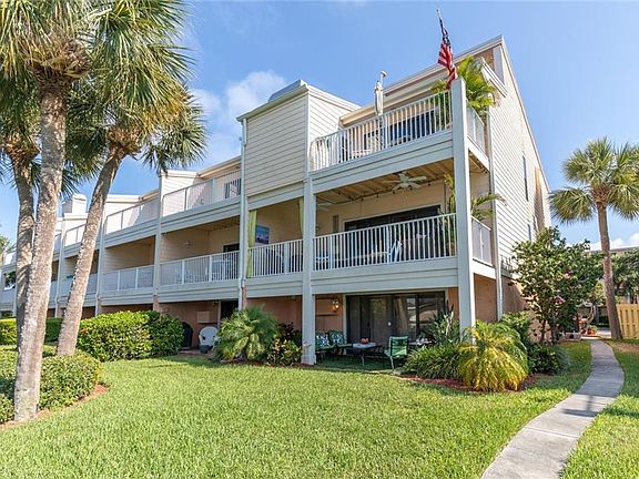 This beautifully remodeled end unit condo will impress you from the moment you enter, with quality updates throughout: fabulous kitchen with quartz countertops, stylish white cabinetry, stainless steel appliances, breakfast nook and closet pantry; impact doors & windows throughout, solid interior doors, gas fireplace, 2 water heaters, large private balconies on both levels, crown moldings, & upgraded insulation. Master bedroom has vaulted ceilings, walk-in closet, updated master bath has dual sink vanities, walk-in shower and Jacuzzi tub. Designed to add an elevator if desired. Roof was replaced in 2013. Oversized garage floors have an attractive and durable epoxy coating and houses the washer and dryer. The adjoining bonus room on the same level is utilized as a Theater room, overlooking an open patio and peaceful water views of the Intracoastal. This community has 2 pools, fishing pier, boat slips for rent as available, and allows up to 2 large pets. Brick pavers being installed soon will be a nice enhancement to this sought-after and friendly waterfront community. Minimum lease period is 6 months, just steps to a Par 3 golf course and public tennis courts, and close proximity to the beach. Aggressively priced to sell quickly! See this rarely available 3 bedroom end unit today!
