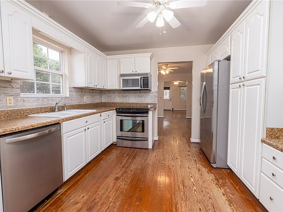 Charming three-bedroom, two-full-bath home in an ideal location with easy access to grocery stores, shopping, and hospitals. Featuring hardwood floors in the living space, a well-equipped kitchen with stainless steel appliances and convenient pull-out shelving in cabinets. The home has a spacious fenced yard on unrestricted land and a large back deck perfect for outdoor activities. This inviting property includes all appliances, making it move-in ready for its new owners.