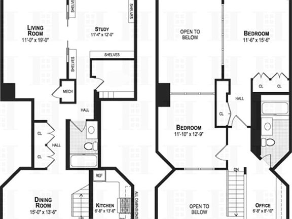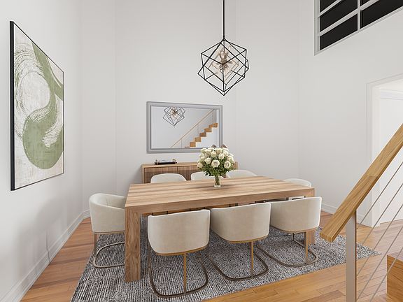 This particular six-room duplex home offers beautiful proportions, generous flow, and proper separation of space. Off the entry foyer, you'll find a large double-height formal dining room with a formidable and spacious separate kitchen. The double-height living room follows, adjacent to an extensive library replete with custom-built-ins, which seamlessly converts into a full third bedroom with an adjoining bath. A contemporary staircase to the second level, where you will find two generous bedrooms, an oversized bath, a large separate office area with built-ins, and an adjoining walk-in closet. WASHER AND DRYER in the unit