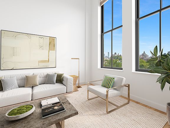 Dramatic and wonderfully spacious, with fifteen-foot ceilings and eleven-foot windows framing sun-splashed direct views over beautiful James Walker Park with wide-open iconic panoramic Greenwich Village views beyond.