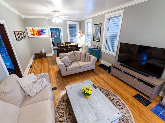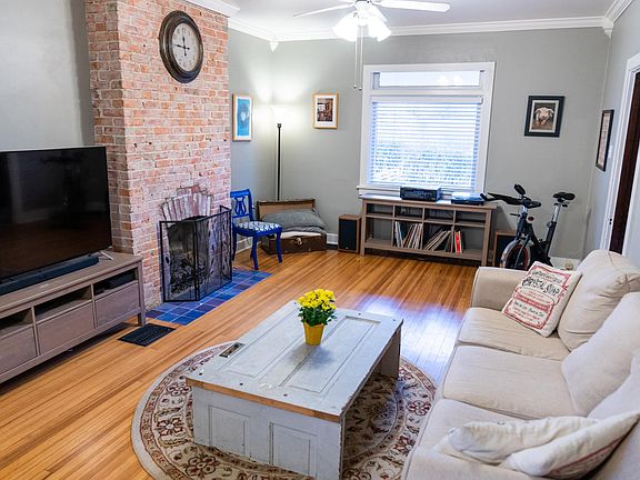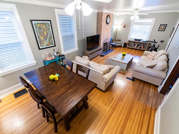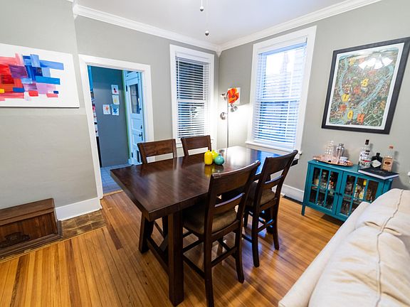 Available May 1st. 4 bedroom home with 2 full bathrooms. One bedroom is captive and would make a nice office, nursery, reading room, etc. The hallway has a nice walk-in closet. 3 bedrooms are on the second floor and the 4th is the entire 3rd floor of the house (not pictured yet because we're packing/moving. Room size is 30'x13'). Exposed brick in the living room, kitchen and bedroom. 2 off-street parking spots! All new windows! Each window is double-paned to keep out the weather has double locks and a screen. Whole house AC (new unit in 2021) and 90% efficiency central heat. Kitchen with stainless steel and black appliances, gray cabinets with soft close drawers, butcher block counter tops, farmhouse sink, and a tile backsplash. Range, refrigerator, microwave, dishwasher and garbage disposal included. Hardwood floors throughout, no carpet. Tile in kitchen and bathroom. Downstairs includes an open concept living room and dining room area. Front load Samsung Washer and standard dryer. Large fenced in back and side yard with an in ground fire pit. Small doggie door leads to the yard. Front porch includes the porch swing. The whole house is equipped with a water filtration system and surge protected for electronics. Large basement with plenty of room for storage. Tenant is responsible for all utilities