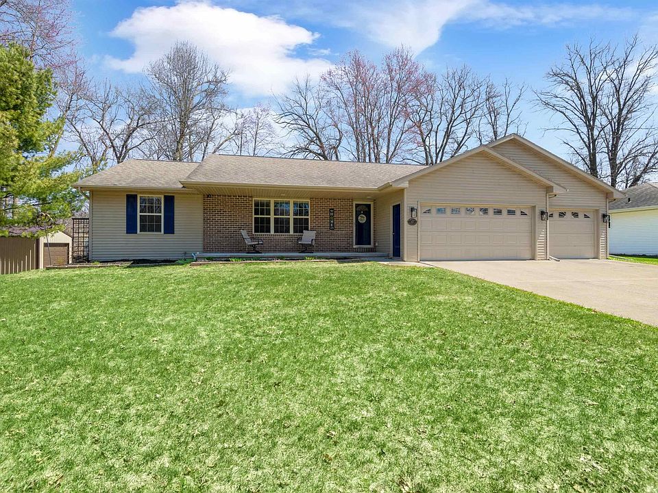 Welcome to Woodland Heights in beautiful Oconto! Nestled on a .64-acre wooded cul-de-sac lot, this meticulously maintained 3-bedroom, 2-bath home offers the perfect blend of peaceful country charm and city convenience. Enjoy the spacious living room with vaulted ceilings and a cozy gas fireplace, a large master suite with a walk-in closet, and a patio deck overlooking the wooded backyard. The heated 3-stall garage provides ample space for vehicles, tools, and toys—perfect for any lifestyle!