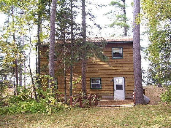 Large 4 bedroom 2.25 bath cabin on Big Turtle Lake. Oversize single garage with storage above. Gradual slope to lake. Large pines. Cabin very close to water's edge. Cabin does need some updating.
