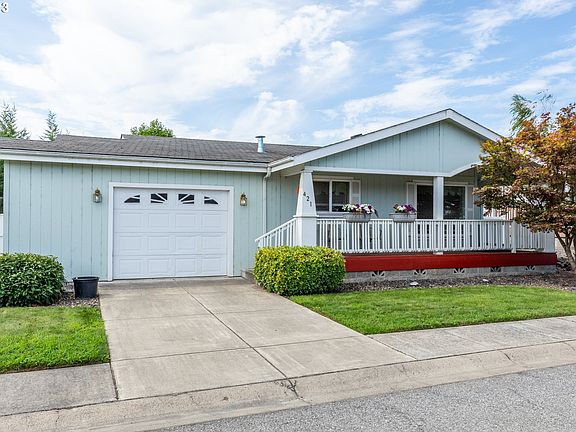 Comfortable 2BED/2BTH manufactured home in Roseburg's desirable 55+ Littlebrook community! With 140 sites on 51.96 acres, Littlebrook is a perfect place for retirement living. The thoughtful high-quality design and close proximity to the South Umpqua River make this truly an exceptional community. This home's location on the perimeter of the community makes it truly quiet & peaceful. Private back patio area is perfect for BBQs & entertaining guests. Attached garage for parking and/or storage. Primary bedroom has large walk-in closet and ensuite including a walk-in shower. Office conveniently located off main living area. All kitchen appliances included + washer/dryer! Monthly space rent is $910 (utilities not included). Call today for your private tour!
