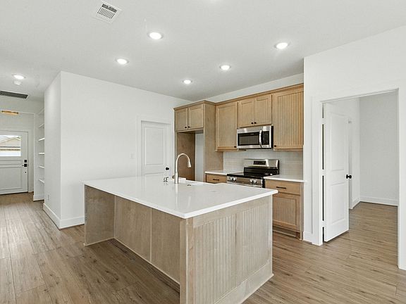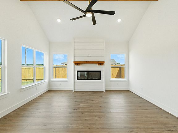 Welcome home to this elegant 3-bedroom, 2-bathroom new construction home, thoughtfully designed with wonderful upgrades and stylish details not normally found at this price point! Step inside to discover an inviting open living area adorned with walls of windows, complete with a cozy electric fireplace and striking vaulted, beamed ceiling. The gorgeous kitchen features beautiful finishes such as Italian natural Quartz countertops, custom cabinets, and an oversized island with pop up charging-outlet station and a wonderful farm sink. Retreat to the fabulous primary suite, boasting a spacious spa-like bathroom designed for ultimate relaxation. Split secondary bedrooms with beautiful guest bath. Modern luxury finish out includes... Delta Champaign Bronze plumbing fixtures, Decora Light switches, Portuguese tile in bathrooms and kitchen, and 9in Luxury Vinal Plank floors throughout. Home is completely spray foam insulated. Enjoy the outdoors with a large backyard with plenty of room for play, gardening, or gatherings. This home is enhanced by beautiful landscaping including full sod, red oak trees and English Garden Roses. Full front and back yard sprinklers in place. Privacy fenced. Set in a great location with easy access to major thoroughfares for effortless commuting.