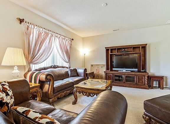 This is a potential Short Sale, subject to lender's approval. Room for the entire family with comfort! This 2-story home offers almost 2900sf of living space with all bedrooms upstairs and main living space downstairs. The home has a large backyard that has more than enough space for a pool if desired. Custom tile work is featured in the downstairs Half Bath, Kitchen and the Master Suite. Upstairs there is a spacious loft area, 3 Guest Rooms sharing a Guest Bath w/ tub&shower combo and a Master Suite. The Master Suite has room for a California King and a sitting area w/ the Master Bath having a soaking tub and shower, plus a door to a balcony. Two French door entryways to the Den/Home Office can be found from the Foyer & the Living Room. There are two eating areas, Formal and Eat-In w/ the Kitchen in the middle. The Kitchen features a unique design w/ custom brick/tile work, an island w/ Breakfast Bar & pot/pan rack. Located on a quiet road in Lehigh Acres w/ close proximity to lots of shopping, dining, and schools.