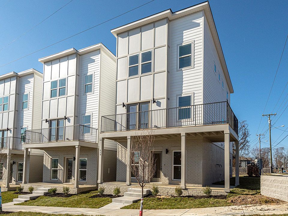 NEW CONSTRUCTION WITH SKYLINE VIEWS 3 bedroom 3.5 bath plus office /loft in all units ALL HARDWOOD with Custom kitchen with quartz tops and stainless appliances. Custom bathrooms and custom built in closets throughout. Private exterior decks and 2 dedicated parking spots with overflow parking onsite. Convenient to interstate and downtown and Nashville west shopping district. Available July 1st 12 month lease 419 Lellyett corner unit big side yard